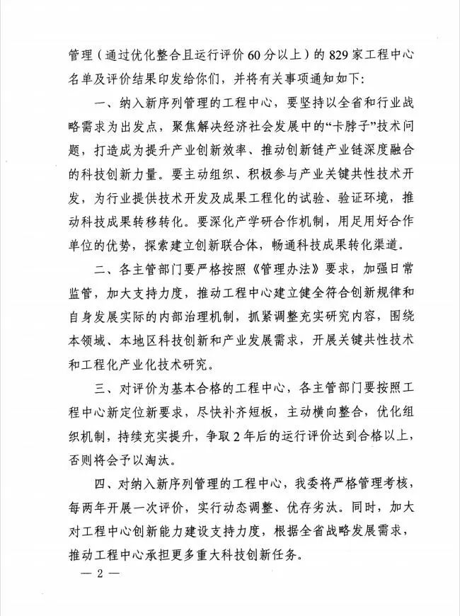 根據《河南省工程研究中心管理辦法》,按照國家科技創(chuàng)新基地優(yōu)化整合要求和部署,河南省發(fā)改委于2022年初下發(fā)了對工程研究中心、工程實驗室進行優(yōu)化整合的通知,通知要求,對研究方向已發(fā)生重大變化,原有領域過寬或過窄、與新技術發(fā)展要求不適應的工程研究中心和工程實驗室,要加快進行調整、充實、完善技術方向,并提出名稱調整建議和理由。對于方向領域相似、依托單位相同的工程研究中心和工程實驗室,要進行整合、實現(xiàn)減量提質。對于核心團隊力量弱化、長期發(fā)展困難、已經完成歷史使命、不符合新定位的工程研究中心和工程實驗室,要堅決撤銷淘汰。
