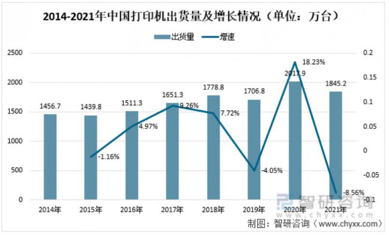 近日,中國產(chǎn)業(yè)咨詢領(lǐng)域的信息與情報(bào)綜合提供商智研咨詢發(fā)布了《2022-2028年中國打印機(jī)行業(yè)市場現(xiàn)狀分析及未來前景分析報(bào)告》。報(bào)告稱,2020年疫情期間,家庭打印需求呈現(xiàn)出了井噴式爆發(fā),學(xué)生在線學(xué)習(xí)和員工在家遠(yuǎn)程辦公帶來大量作業(yè)及文件打印需求,成為了市場增長的主要驅(qū)動(dòng)力。進(jìn)入2021年,疫情得到有效控制,生產(chǎn)生活逐步常態(tài)化,消費(fèi)市場需求出現(xiàn)回落。2021年全年,中國打印外設(shè)市場出貨量為1845.2萬臺(tái),同比下降8.56%。