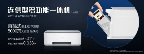 連供型多功能一體機(jī)L510系列,則采用5000頁(yè)直插式大墨瓶,無(wú)需灌墨,不臟手,輕輕一插,即可開(kāi)始打印,彩印單頁(yè)僅需0.038元。