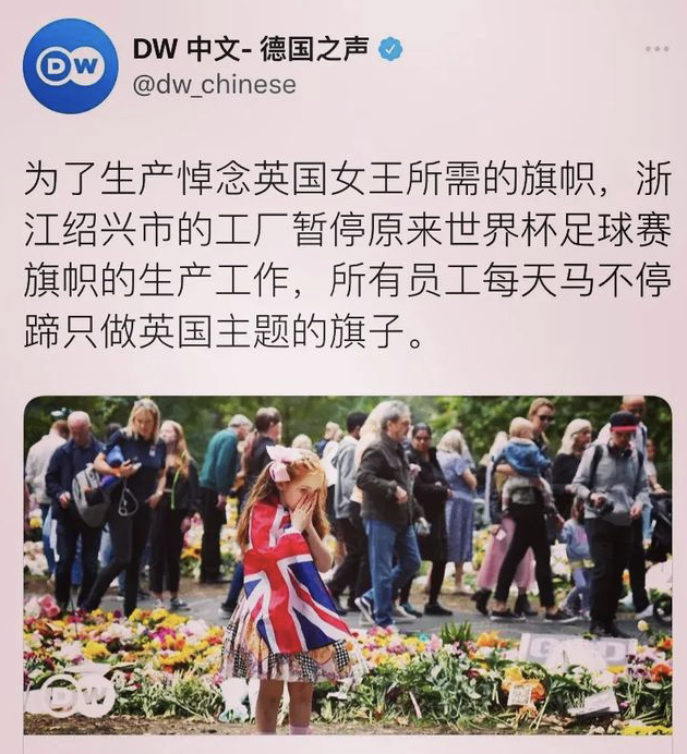 當(dāng)?shù)貢r(shí)間9月19日上午11點(diǎn),英國(guó)女王伊麗莎白二世的葬禮威斯敏斯特宮舉行,全球近200個(gè)國(guó)家與地區(qū)約500名代表出席。而就在全球悼念英女王的時(shí)候,很少有人知道中國(guó)一家工廠因?yàn)榕蹼x世已經(jīng)加班加點(diǎn)了無(wú)數(shù)天。