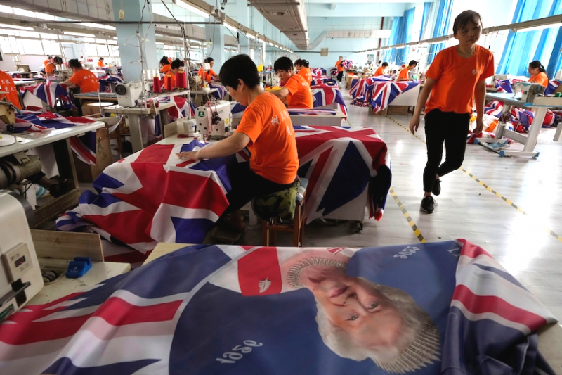 就在接到訂單的當(dāng)天,工廠中的100多名員工從早上7:30開(kāi)始,連續(xù)工作14個(gè)小時(shí),只制作英國(guó)主題的旗幟。而隨后的一周多時(shí)間,創(chuàng)棟旅游160多位員工,還有多個(gè)加工廠的工人更是加班加點(diǎn)趕工,就是這種情況下,一些坐不住的客戶,索性直接趕來(lái)工廠拿貨,甚至不要求包裝,直接放在大盒子里就拉走了。