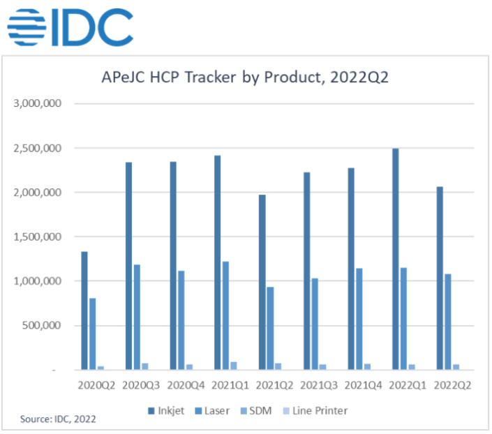 據(jù)IDC最新數(shù)據(jù),2022年第二季度,亞太地區(qū)(日本和中國除外)打印機出貨量為321萬臺,同比增長7.6%,是該地區(qū)連續(xù)三個季度同比下降后的第一個增長季度。