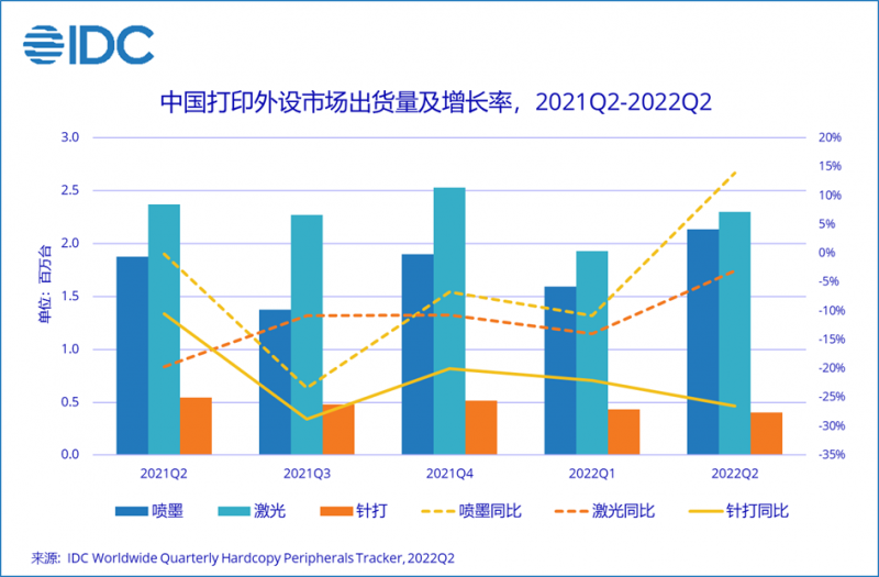 近日,國際數(shù)據(jù)公司 (IDC) 發(fā)布了2022第二季度全球打印機市場出貨量報告。