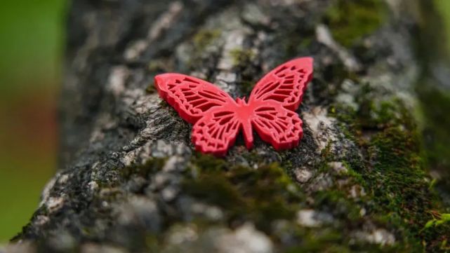 蝴蝶造型的工藝品零件用鏤空結(jié)構(gòu)還原蝶翼精致花紋,大面積的鏤空結(jié)構(gòu)為該零件大幅減重,零件壁薄至0.5mm,卻有良好強(qiáng)度,讓陶瓷蝴蝶整體華美輕盈且亦有振翅之力。