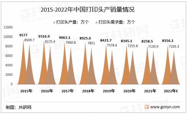 2015-2022年中國打印頭產(chǎn)銷量情況