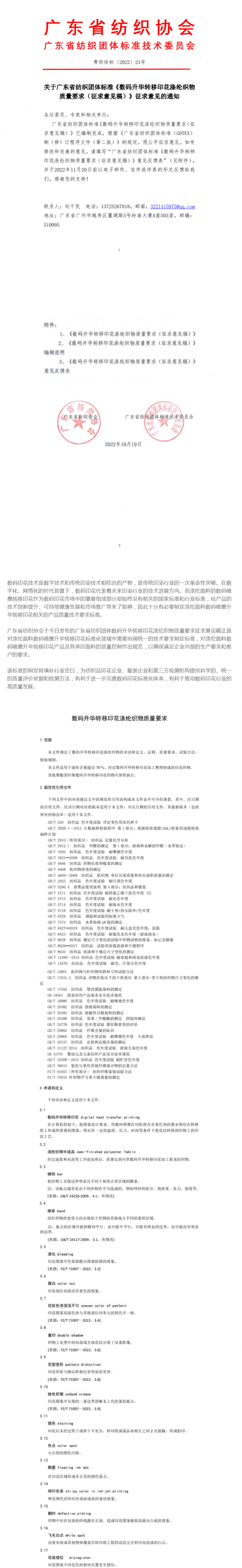 廣東省紡織協(xié)會(huì)今日發(fā)布廣東省紡織團(tuán)體數(shù)碼升華轉(zhuǎn)移印花滌綸織物質(zhì)量要求征求意見稿!