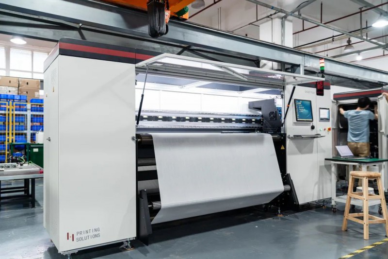隨著紡織業(yè)下游領(lǐng)域,消費(fèi)者的需求變得更加個(gè)性化,小批量、快時(shí)尚成為潮流,加上雙十一購物狂歡節(jié)的來臨,數(shù)碼印花類的訂單需求增多,越來越多的品牌愿意選擇數(shù)碼印花的工藝來設(shè)計(jì)和開發(fā)生產(chǎn)大貨,在另外一間車間,弘達(dá)山為了滿足消費(fèi)者的不同需求,采購的另一臺漢印DA182T Plus 熱轉(zhuǎn)印數(shù)碼印花機(jī)正在有序的做好打印前的準(zhǔn)備,這款DA182T Plus 擁有8個(gè)京瓷工業(yè)打印噴頭,產(chǎn)能高達(dá)650m²/小時(shí),在保證高精度打印品質(zhì)的同時(shí),還兼顧高速的打印效率。
