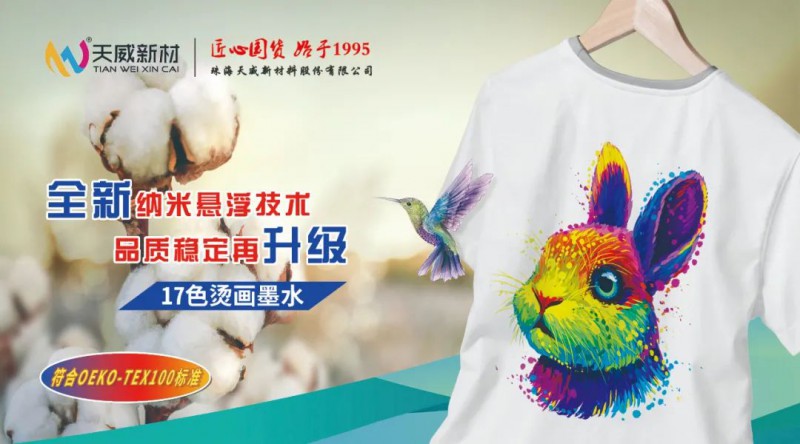 天威燙畫墨水,不論用哪款燙畫膜,燙印成品均色彩飽和艷麗,手感柔軟、光滑細(xì)膩且拉伸性好。