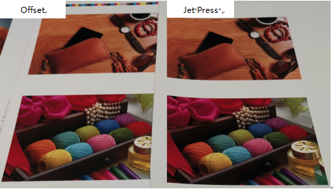可以說,JET PRESS 750S的色彩準(zhǔn)確度高,可媲美目前業(yè)內(nèi)高色彩準(zhǔn)確度的數(shù)碼打樣系統(tǒng),而750S的高生產(chǎn)效率和多種生產(chǎn)紙張印刷適應(yīng)性卻又是許多數(shù)碼打樣所難以實(shí)現(xiàn)的。以下是750S與膠印在同一種紙張上的經(jīng)過色彩管理后樣張對(duì)比。