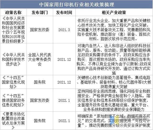 中國家用打印機行業(yè)相關(guān)政策梳理