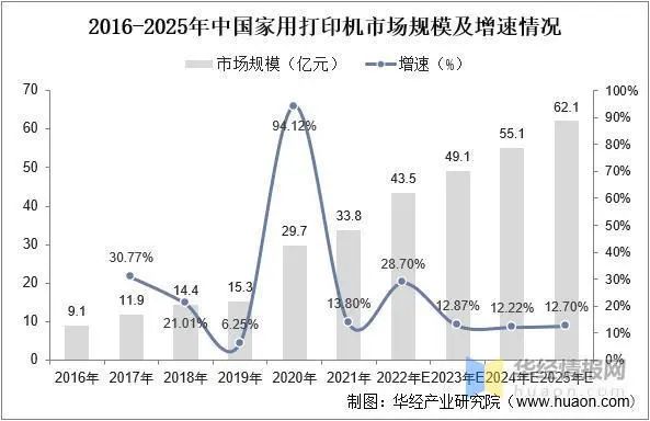 2016-2025年中國家用打印機市場規(guī)模及增速情況