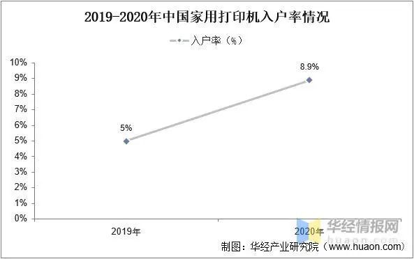 隨著中國政策的扶持加碼及各類學歷學生人數(shù)的增加,導致需求的上漲,家用打印機入戶率快速提升。根據(jù)數(shù)據(jù)顯示,2020年我國家用打印機入戶率由2019年的5%提升到8.9%。未來隨著中國家用打印機滲透率的提高,入戶率將會繼續(xù)增長。