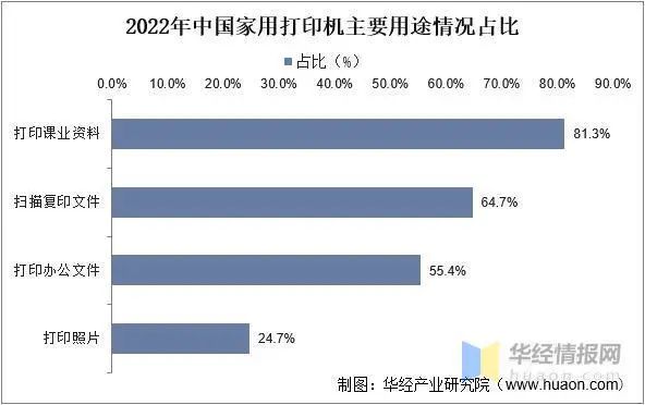 2022年中國家用打印機主要用途情況占比