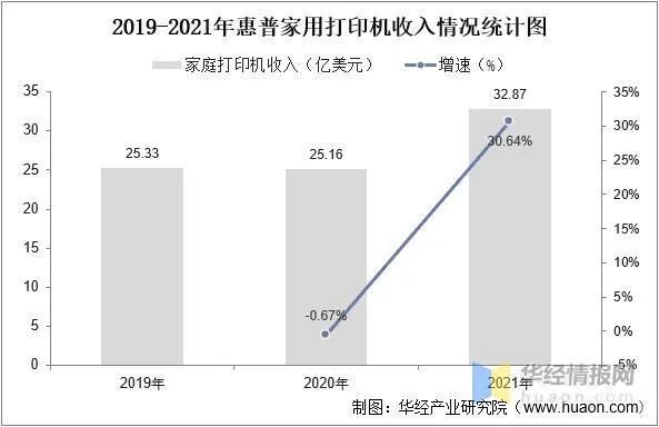 2019年-2021年惠普家用打印機收入情況統(tǒng)計圖