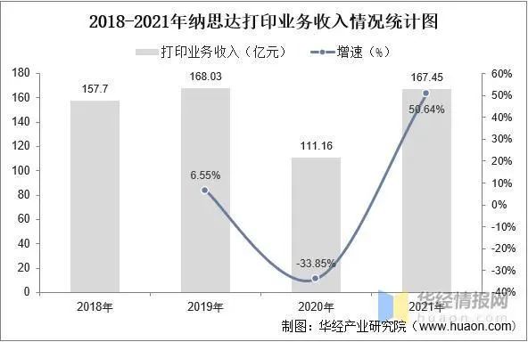 納思達為中國打印機行業(yè)重點企業(yè),根據(jù)數(shù)據(jù)顯示,受到疫情的影響,納思達打印業(yè)務收入在2020年有所下降,2021年納思達打印業(yè)務收入為167.45億元,同比2020年上漲50.64%。