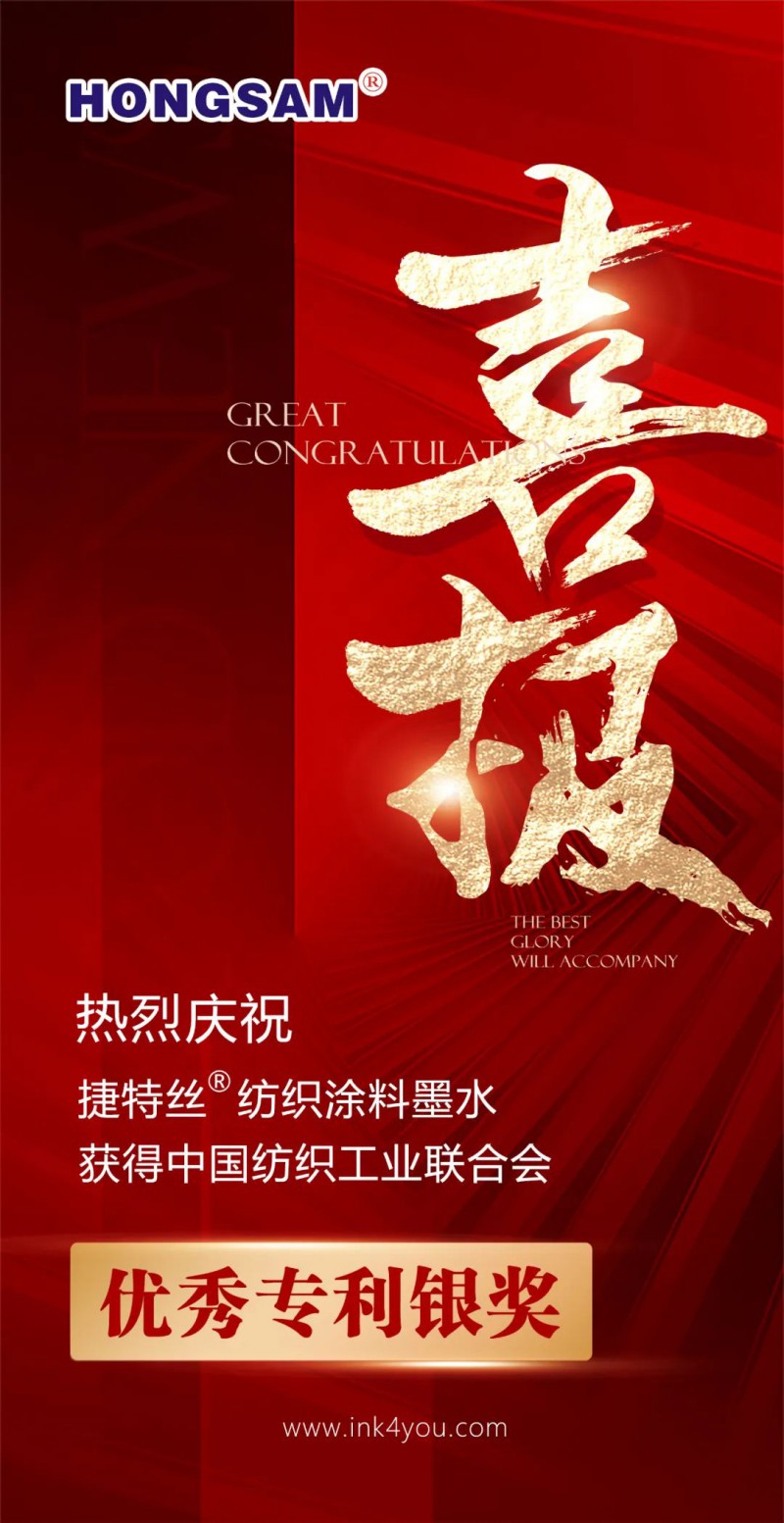 日前,中國(guó)紡織聯(lián)合會(huì)發(fā)布《2022年度中國(guó)紡織工業(yè)聯(lián)合會(huì)優(yōu)秀專利的通知 》,鴻盛數(shù)碼研發(fā)的“捷特絲®”紡織涂料墨水獲2022 年度中國(guó)紡織工業(yè)聯(lián)合會(huì)優(yōu)秀專利” 銀獎(jiǎng)。