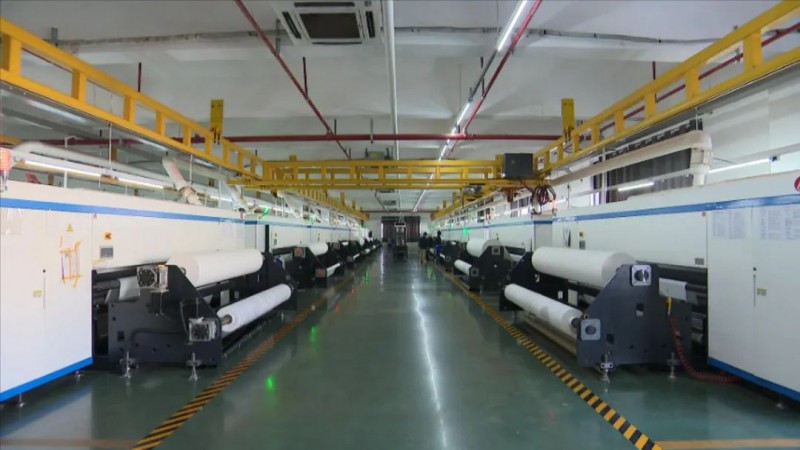 50臺高速紡織數(shù)碼噴印機正在全速運轉