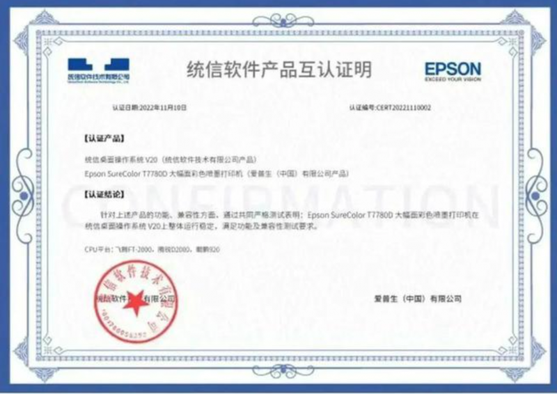 自 2020 年 5 月起,愛普生與統(tǒng)信軟件開始推進設備與國產(chǎn)操作系統(tǒng)和國產(chǎn)軟件的適配工作。近期,愛普生大幅面噴墨打印機產(chǎn)品進行升級,正式完成與統(tǒng)信 UOS 操作系統(tǒng)的適配工作。