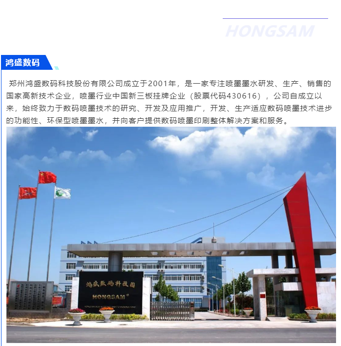 此次的測試成功,也給還在觀望的設(shè)備廠商打消了顧慮,從墨水的流暢性及兼容性來講,是完全達到官方的要求。從實際應(yīng)用中,鴻盛數(shù)碼高溫分散直噴染料墨水已成功應(yīng)用于多種工業(yè)噴頭。