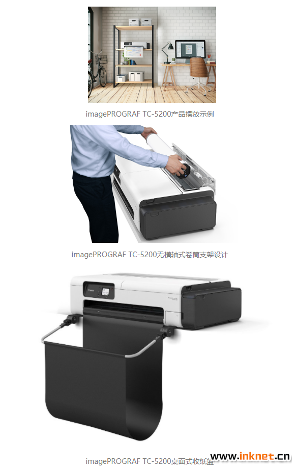 同時(shí),用戶可以根據(jù)自身需求,為imagePROGRAF TC-5200打印機(jī)額外選配桌面式收紙籃,讓打印文件輕松收納的同時(shí),也可以使商務(wù)辦公空間更加整潔有序。