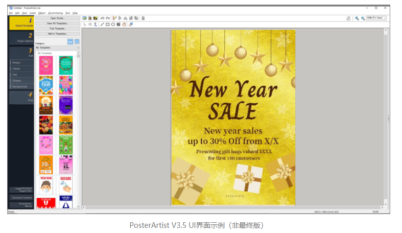 針對(duì)于餐廳、酒店、零售店等使用場景,imagePROGRAF TC-5200還支持Poster Artist Lite軟件應(yīng)用方案,用戶可以輕松制作海報(bào)和傳單。Poster Artist Lite提供種類繁多的模板,讓用戶可以根據(jù)自己的需要選擇素材,隨心編輯文字和圖片,即使非專業(yè)人士也能輕松進(jìn)行設(shè)計(jì)創(chuàng)作。在即將發(fā)布的V3.5版本中,還增加了擁有金色/銀色紋理效果的模板,更加契合中國市場用戶的使用習(xí)慣。