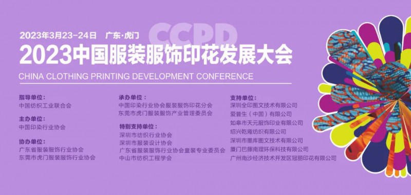 在中國(guó)紡織工業(yè)聯(lián)合會(huì)指導(dǎo)下,由中國(guó)印染行業(yè)協(xié)會(huì)主辦的第六屆“2023中國(guó)服裝服飾印花發(fā)展大會(huì)”將于2023年3月23-24日,在具有粵港澳大灣區(qū)時(shí)尚產(chǎn)業(yè)新高地美譽(yù)的廣東省虎門鎮(zhèn)重啟召開(kāi)。