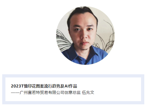 T恤單品中,圖案元素對(duì)于整體風(fēng)格的塑造影響很大。2023春夏T恤圖案將更多地融入潮酷味、甜酷風(fēng)、趣味化、學(xué)院風(fēng)、運(yùn)動(dòng)細(xì)節(jié)、扎染暈染和涂鴉設(shè)計(jì)等元素,讓產(chǎn)品去老齡化和年輕化,以打造更具活力的T恤單品。如何使用AI生成圖案?并在T恤上得到完美表達(dá)。伍總監(jiān)的演講將圍繞T恤印花圖案流行趨勢(shì)展開(kāi)。
