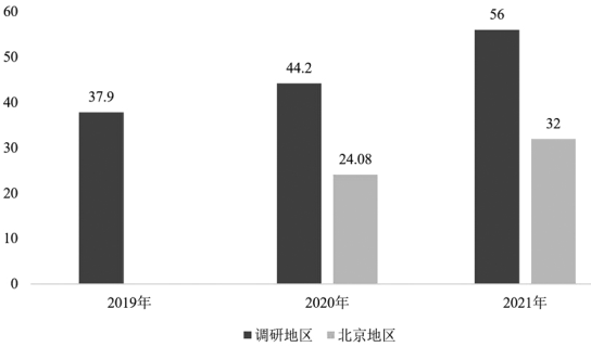 從紙張使用情況看,41家出版單位中,2019年數(shù)字印刷用紙37.9萬(wàn)令。2020年數(shù)字印刷用紙44.2萬(wàn)令,同比增長(zhǎng)17%,其中北京地區(qū)24.08萬(wàn)令,占55%;其他地區(qū)20.12萬(wàn)令,占45%。2021年數(shù)字印刷用紙56萬(wàn)令,同比增長(zhǎng)27%,其中北京地區(qū)32萬(wàn)令,占57%;其他地區(qū)24萬(wàn)令,占43%。因此,近幾年數(shù)字印刷主要集中在北京地區(qū),占據(jù)半壁江山。