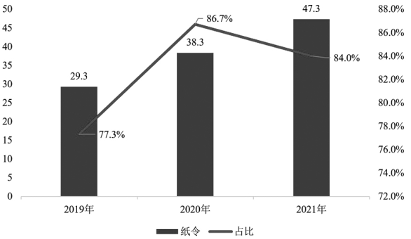41家出版單位2019年至2021年數(shù)字印刷用紙情況