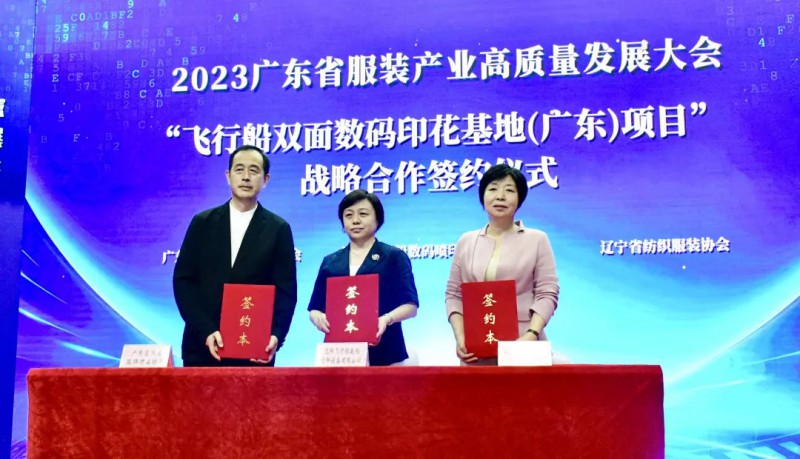 在簽約儀式環(huán)節(jié),廣東省服裝服飾行業(yè)協(xié)會(huì)與遼寧省紡織服裝協(xié)會(huì)、沈陽(yáng)飛行船數(shù)碼噴印設(shè)備有限公司達(dá)成戰(zhàn)略合作,將依托飛行船擁有的全球發(fā)明專(zhuān)利“一次成型雙面數(shù)碼印花技術(shù)”,推動(dòng)紡織服裝行業(yè)高質(zhì)量發(fā)展轉(zhuǎn)型,增強(qiáng)“雙面數(shù)碼印花技術(shù)”行業(yè)滲透力,加快“雙面數(shù)碼印花基地”的建設(shè)與資源對(duì)接步伐,構(gòu)建以中國(guó)原創(chuàng)數(shù)碼印花技術(shù)為核心的中國(guó)時(shí)尚話(huà)語(yǔ)權(quán)。
