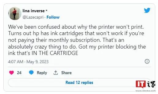 這次更新引發(fā)了用戶的憤怒,他們?cè)谏缃幻襟w上抱怨說,他們感覺被“欺騙”了,惠普的墨盒往往比第三方墨盒貴一倍以上。