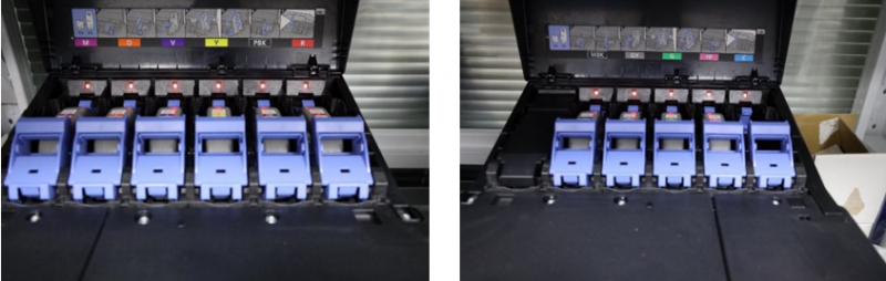 在批量打印過程中,經常會發(fā)生突然墨水沒有的情況,這時只能停下設備、中斷打印、重新換墨,卡在設備上沒印完的作品也只能作廢處理。這樣不僅會降低打印效率還會造成不必要的消耗。但是小器印物所使用GP-520之后就有效避免了上述問題的發(fā)生。GP-520的“副墨倉”設計可以保證完整的印品輸出,即使墨盒中的墨水已經用完,副墨倉中還有一定余量緩沖的墨水,可以確保在不中斷打印的情況下更換墨水,避免不必要的消耗,進一步節(jié)省成本。