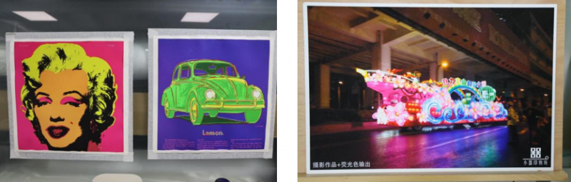 佳能 GP-520產品共有11種顏色的墨水,其不僅搭載了黑(BK)、粗面黑色(MBK)、青(C)、品紅(M)、黃(Y)五個基礎色,改善顆粒感和灰階跳躍的灰色(GY),還有增加色彩飽和度的紅(R)、橙(O)、綠(G)、紫色(V)四個特殊色,更有水性顏料熒光粉墨水(FP)。GP-520通過“靈動亮彩”數據處理技術對新開發(fā)的熒光粉色墨水與其他顏色墨水在紙面上的疊加方式進行優(yōu)化,可以使輸出作品的特定區(qū)域脫穎而出,實現明亮柔和且層次豐富的色彩再現,同時還可以在圖像的指定區(qū)域內輸出熒光專色的效果,令圖像表達更具沖擊力。