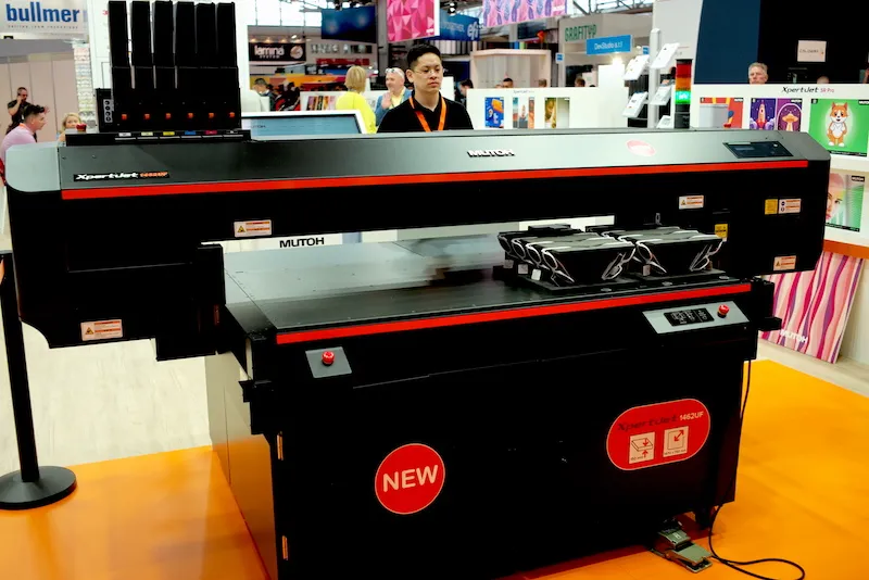 Mutoh在FESPA展會(huì)上展示了一款新的小型平板打印機(jī)XpertJet 1462UF。類似于其兄弟型號(hào)XPJ 661和461UF,該打印機(jī)主要面向工業(yè)印刷市場(chǎng)。這擴(kuò)展了Mutoh現(xiàn)有的A2+和A3+桌面打印機(jī)系列,床面尺寸為1470毫米x 740毫米,大致相當(dāng)于A1+尺寸。Nessan Cleary從展會(huì)現(xiàn)場(chǎng)報(bào)道。