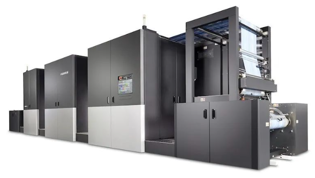 其噴頭來自于京瓷,分辨率為1200 x 1200 dpi,6個(gè)噴頭組各有7個(gè)噴頭,該印刷機(jī)還包括自動(dòng)套準(zhǔn)控制和缺失噴嘴補(bǔ)償。其水性油墨的能力使其適用于食品包裝印刷,但尚不完全清楚油墨的來源。據(jù)介紹,這種油墨來自富士膠片,該公司正在美國建設(shè)一個(gè)全新的軟包裝油墨工廠,未來油墨將在該工廠生產(chǎn)。