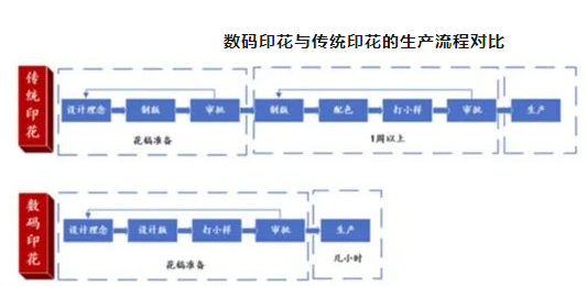 而數(shù)碼印花簡化了繁瑣的工藝,提高了訂單周期,也降低了印版制作和校對的成本,再加上生產(chǎn)過程不受批量的限制,能實現(xiàn)個性化需求。由此看來,數(shù)碼印染相較于傳統(tǒng)印染更能適應(yīng)“小單快反”的新模式。