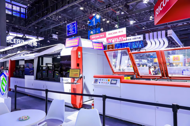 施潘德推出的彩色輪轉(zhuǎn)噴墨印刷系統(tǒng),可實(shí)現(xiàn)銅版紙+新聞紙噴墨打印。圣德科技展示的M440C彩色數(shù)字噴墨印刷機(jī),可用于數(shù)碼專(zhuān)用紙,以及普通膠版紙、銅版紙,輕型紙、純質(zhì)紙,甚至是宣紙。
