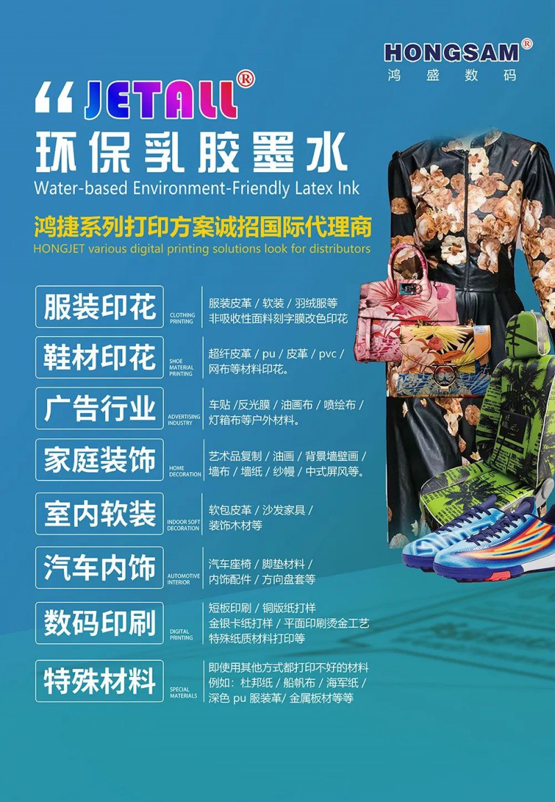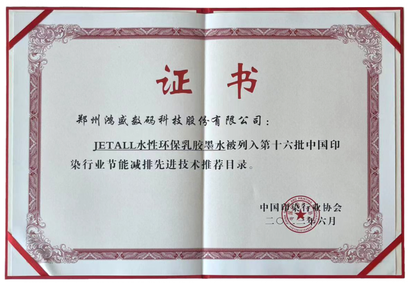 鴻盛數(shù)碼以JETALL®水性環(huán)保乳膠墨水印刷方案為申報主題,現(xiàn)場展示了產(chǎn)品打印的成品、通過視頻演示了打印過程,以圖片形式說明了項目技術(shù)原理。JETALL®水性環(huán)保乳膠墨水印刷方案解決了在非吸收性介質(zhì)不吸收、不能成像的技術(shù)難點(diǎn),打印的產(chǎn)品具有無氣味、無腐蝕、無揮發(fā)、色彩飽和度高、牢度好等優(yōu)點(diǎn),可廣泛應(yīng)用于數(shù)碼印花、數(shù)碼印刷、數(shù)碼影像、藝術(shù)品復(fù)制、家居裝璜等各種領(lǐng)域。JETALL®水性環(huán)保乳膠墨水通過國際權(quán)威SGS公司檢測和國家棉花及紡織服裝產(chǎn)品質(zhì)量監(jiān)督檢驗中心檢測,2023年6月成功入選《第十六批中國印染行業(yè)節(jié)能減排先進(jìn)技術(shù)推薦目錄》。