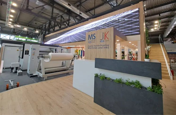 MS Printing Solutions 和 JK Group 在 ITMA 上展示的創(chuàng)新解決方案使涂料印刷成為一種簡(jiǎn)化的無(wú)水工藝,使客戶能夠建立可持續(xù)的生產(chǎn)鏈,同時(shí)實(shí)現(xiàn)具有成本效益的印刷輸出。憑借完全集成的在線印刷系統(tǒng),這些公司的產(chǎn)品最大限度地縮短了訂單和生產(chǎn)之間的時(shí)間間隔,從而實(shí)現(xiàn)了幾乎按需的顏料印刷。通過(guò)采用該系統(tǒng),客戶可以最大限度地提高產(chǎn)量,同時(shí)顯著降低成本、排放、能源消耗和用水量。