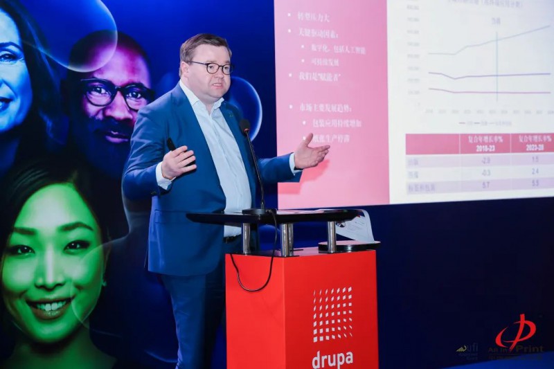 德國(guó)機(jī)械設(shè)備制造業(yè)聯(lián)合會(huì)總經(jīng)理 Thomas Schiemann先生為大家分析全球及歐洲印刷行業(yè)現(xiàn)狀及未來趨勢(shì),發(fā)人深省,引得現(xiàn)場(chǎng)聽會(huì)嘉賓踴躍提問互動(dòng)。令人期待的是,這些相關(guān)話題及解決方案也將在drupa 2024展會(huì)的同期活動(dòng)中體現(xiàn)。