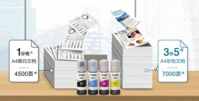 L11058配置全新升級的004墨水,實現(xiàn)了高性價比。該墨水適用于多種介質(zhì),包括白卡紙、皮紋紙、噴墨銅版紙等,滿足圖文打印店和設(shè)計工作室的特殊打印需求。此外,004墨水采用染料墨水,具有強大的介質(zhì)適用性,同時實現(xiàn)了低成本高質(zhì)量的打印,如A4黑白文本每頁成本低至0.01元,A4彩色文本每頁成本低至0.035元。
