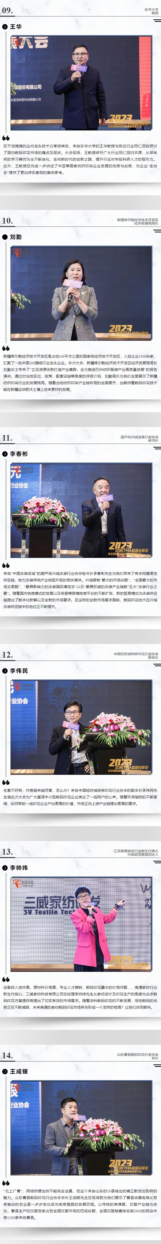 本次大會邀請到來自多家業(yè)內(nèi)龍頭企業(yè)的重磅嘉賓,以及多個行業(yè)協(xié)會及知名企業(yè)參會,包括但不限于:上海服裝行業(yè)協(xié)會、中國輕紡城轉(zhuǎn)移印花行業(yè)協(xié)會、遼寧葫蘆島興城泳裝行業(yè)協(xié)會、山東曹縣數(shù)碼印花行業(yè)協(xié)會、江蘇南通國際家紡產(chǎn)業(yè)園、新疆庫爾勒經(jīng)濟技術(shù)開發(fā)區(qū)、烏茲別克斯坦紡織服裝工業(yè)協(xié)會、紹興市中小紡織企業(yè)促進會、SHIEN希音、萬事利集團有限公司、愉悅家紡有限公司、悅達家紡有限公司、廈門準(zhǔn)者體育用品有限公司、東華大學(xué)、北京印刷學(xué)院、上海國際時尚教育中心、無錫工藝職業(yè)技術(shù)學(xué)院、際華集團股份有限公司、江蘇州際數(shù)碼印花有限公司、浙江互生紡織科技有限公司、江蘇龍達紡織科技有限公司、裕和泰紡織實業(yè)有限公司、宏華燙印有限公司、紹興順彩紡織品有限公司等。