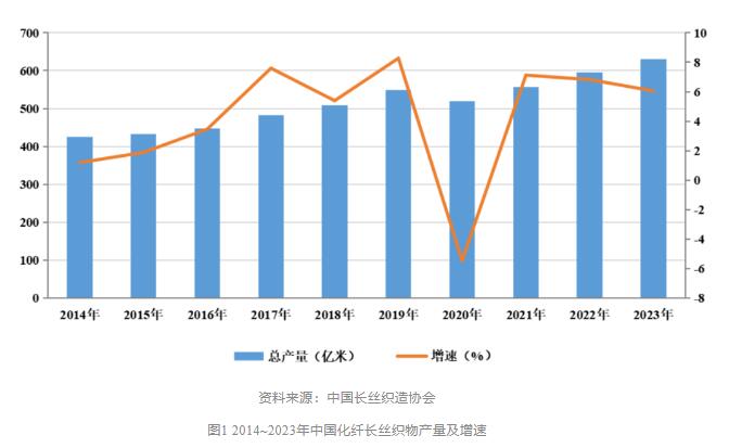 據(jù)中國(guó)長(zhǎng)絲織造協(xié)會(huì)統(tǒng)計(jì),截至2023年底,我國(guó)長(zhǎng)絲織造行業(yè)織機(jī)規(guī)模達(dá)到92.7萬(wàn)臺(tái),其中噴水織機(jī)85.5萬(wàn)臺(tái),同比增長(zhǎng)11.04%。2023年全年我國(guó)化纖長(zhǎng)絲織物總產(chǎn)量達(dá)到631億米,同比增長(zhǎng)6.05%。