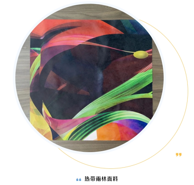 “熱帶雨林”采用杜邦紙進(jìn)行印花制作,杜邦紙具有防水、透氣、質(zhì)輕、強(qiáng)韌、耐撕裂、防菌、抗紫外線、耐100℃高溫、100%回收循環(huán)使用等突出優(yōu)勢(shì)。濃烈的色彩,交織的枝葉,如熱帶雨林般熱情而神秘,令人神往。