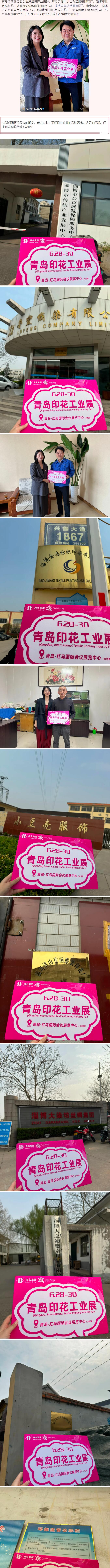 青島印花展組委會(huì)走進(jìn)淄博產(chǎn)業(yè)集群,拜訪了淄川洪山孜涵服裝印花廠、淄博菲林?jǐn)?shù)碼印花、淄博金浩紡織印染有限公司、淄博大染坊絲綢集團(tuán)、魯泰紡織 、淄博人之初嬰童用品有限公司、淄川鐘樓雨瑄數(shù)碼印花廠、淄博雅晴工貿(mào)有限公司、小豆殼服飾等企業(yè),進(jìn)行拜訪及了解紡織印花行業(yè)趨勢(shì)發(fā)展情況。