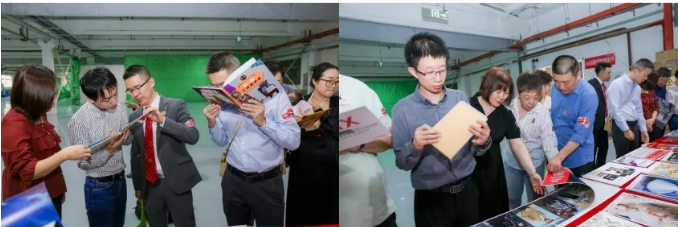 現(xiàn)場觀眾細(xì)致觀察佳能數(shù)碼印刷系統(tǒng)所打印的高品質(zhì)印品