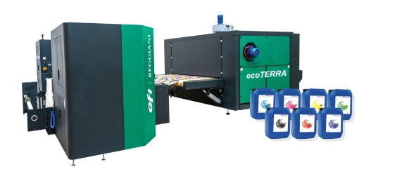 “EFI Reggiani ecoTERRA”是一種水性涂料印刷系統(tǒng)。最大輸出寬度為3.4m,最大輸出速度為228.6m2/小時(shí)。無需預(yù)處理和后處理即可實(shí)現(xiàn)紡織品數(shù)碼印花。
