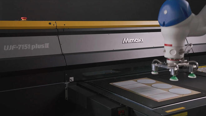 Mimaki將在drupa2024首次展示其此前在日本宣布的印刷流程自動化系統(tǒng)。該系統(tǒng)結(jié)合了UV打印機(jī)和手臂機(jī)器人,能夠自動完成打印介質(zhì)的放置、打印指令的執(zhí)行和成品的收集,顯著減少了操作員的勞動量,減少了約90%的操作需求,從而有效應(yīng)對勞動力短缺問題。