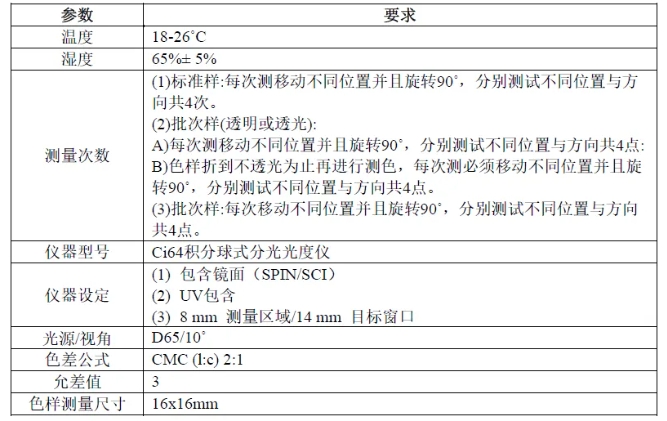 3)色卡的顏色應(yīng)按照GB/T 3979-2008 中規(guī)定的“光譜光度測色法”進行測量,按GB/T 8424.3 中規(guī)定的方法進行色差計算。