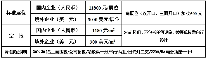 【展位規(guī)格及收費標(biāo)準(zhǔn)】